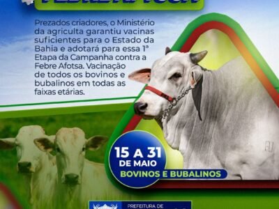 Prefeitura de Medeiros Neto reafirma a importância da vacinação na 1ª etapa da Campanha de Vacinação contra a Febre Aftosa em bovinos e bubalinos