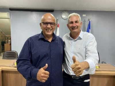 Prefeito Beto Pinto parabeniza vereador Pintão por reeleição na presidência da Câmara Municipal de Medeiros Neto