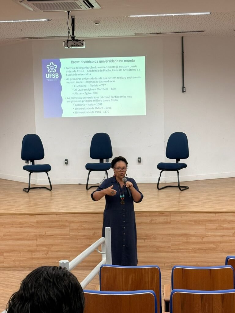 Durante a acolhida, os calouros tiveram a oportunidade de se informar sobre como verificar a elegibilidade para bolsas de estudo, auxílios e outros programas. A Reitora da UFSB, Professora Doutora Joana Angélica, fez uma apresentação sobre o panorama do ensino superior na América Latina, com ênfase na interiorização do ensino superior público no Brasil.