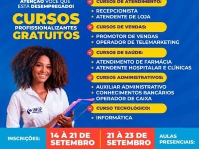 Prefeitura de Medeiros Neto e Infop abrem inscrições para cursos profissionalizantes gratuitos presenciais