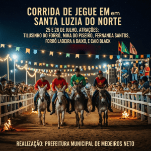 Quem for a Santa Luzia do Norte nos dias de festa poderá curtir não só as corridas, mas também a gastronomia típica, o artesanato local e o caloroso acolhimento do povo de Patioba. O retorno da Corrida de Jegue marca o renascimento de uma tradição que há muito tempo faz parte do coração da região, mostrando que a cultura popular segue viva e pulsante.