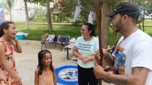 Durante dois meses, os sons de berimbaus em construção e as cores vibrantes do artesanato tomaram conta de espaços no bairro São Bernardo, em Medeiros Neto. A feirinha itinerante “Saberes da Nossa Terra”, idealizada pela agente cultural Isabel Costa, a popular Morena, percorreu a Escola Aurelino e a própria casa da realizadora, local muito frequentado pela criançada, promovendo uma imersão lúdica nas tradições baianas.
