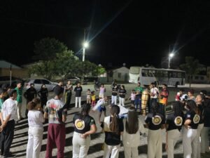 Em um movimento que une tradição, inclusão social e empowerment cultural, o Grupo Ancestralidade Negra, liderado pelos experientes professores Misac Teles, Fernandes e Gustavo, e com a colaboração de Adrio Luz, concluiu com êxito o projeto “Capoeira e Maculelê para a Comunidade”. A iniciativa, realizada com recursos da Lei Federal Aldir Blanc e com o apoio fundamental da Secretaria Municipal de Cultura, sob a gestão da secretária Marlene Santos, levou as riquezas da cultura afro-brasileira para 60 crianças e adolescentes de bairros periféricos de Medeiros Neto, transformando praças e o calçadão do estádio em salas de aula a céu aberto.