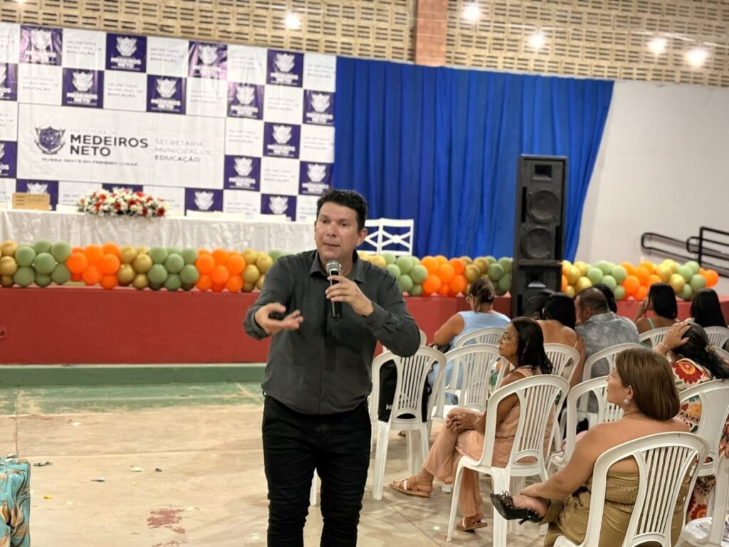Em sua fala, o prefeito Beto Pinto apresentou anúncios considerados estratégicos para o fortalecimento da educação municipal. Entre eles, destacou-se o lançamento do Projeto Visão de Futuro, iniciativa voltada ao atendimento oftalmológico de estudantes da rede pública, com a realização de exames e a entrega gratuita de óculos. O projeto tem como prioridade o enfrentamento do analfabetismo decorrente de problemas de visão, além de contribuir para a melhoria da qualidade de vida dos alunos, incluindo o público da Educação de Jovens e Adultos (EJA).