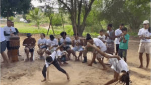 A presença de crianças da Escola Municipal Cristina no evento foi um dos pontos altos. Os alunos tiveram a oportunidade de conhecer o espaço da Ilha e de vivenciar, de forma lúdica e educativa, a história da capoeira, aprendendo diretamente com os mestres. Esta integração entre projeto cultural e escola reforçou o caráter formativo e de pertencimento da iniciativa.