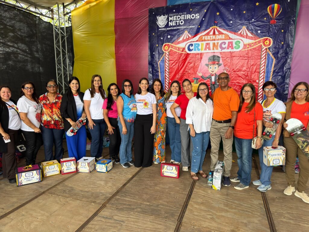 O Estádio Municipal de Medeiros Neto foi palco, na manhã desta sexta-feira (24), da tradicional Festa do Mês das Crianças, um evento consolidado como legado da atual gestão municipal. A celebração reuniu centenas de crianças da rede de ensino municipal, marcando um dia dedicado à alegria e ao cuidado com a infância.